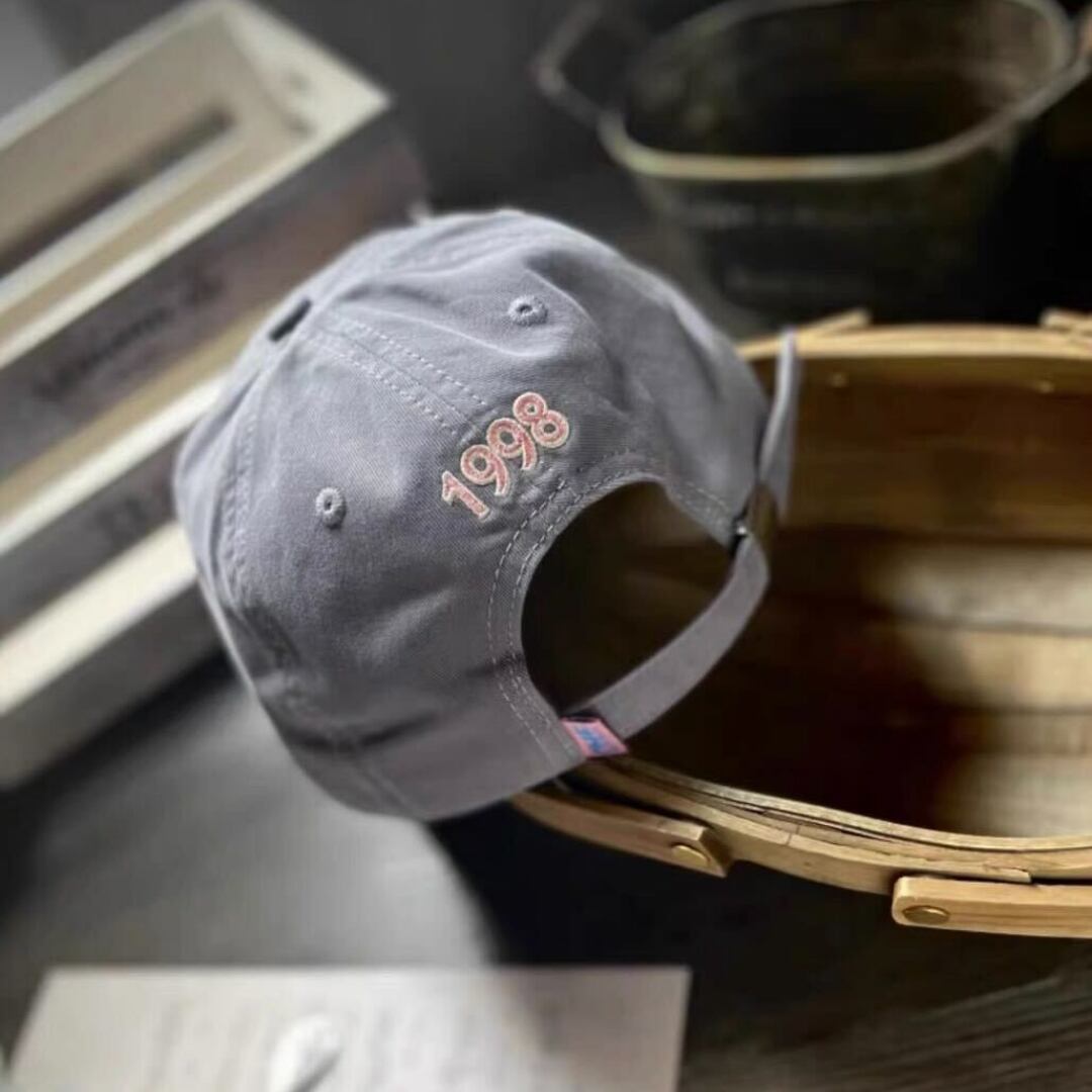 ■ ピンク文字ベースボールキャップ: ファッショントレンドを体現。