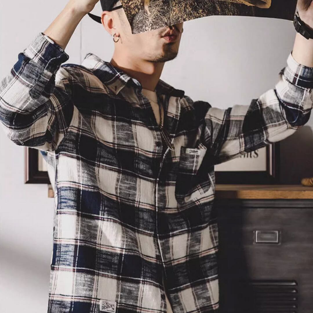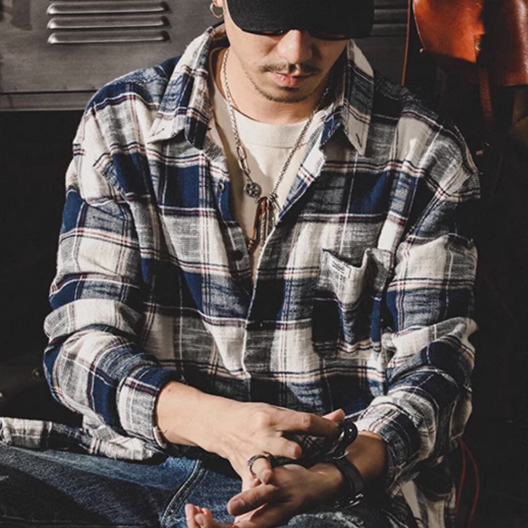 クラシック チェックシャツ ロングスリーブ レトロ シャツ ジャケット 21217